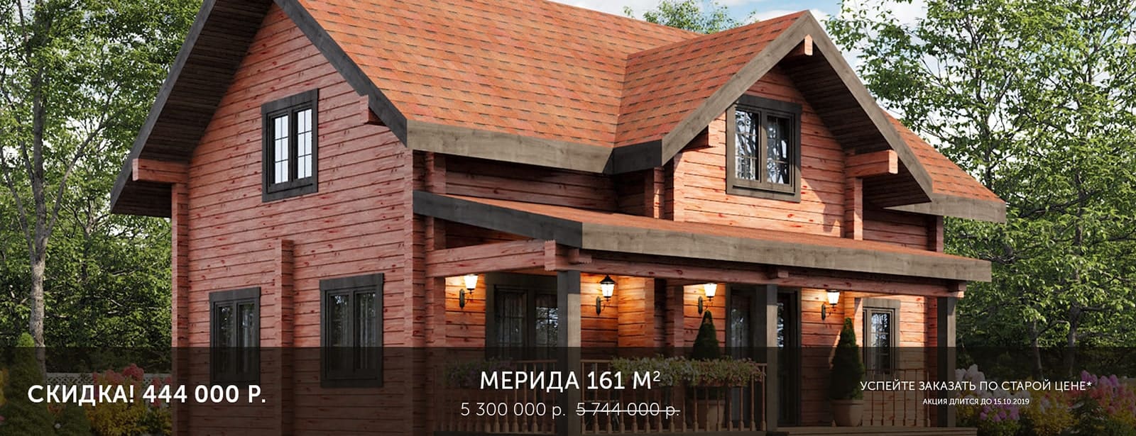 Максимальная усадка — до 1,5%, гарантия — 5 лет. Из сосны, кедра, лиственницы