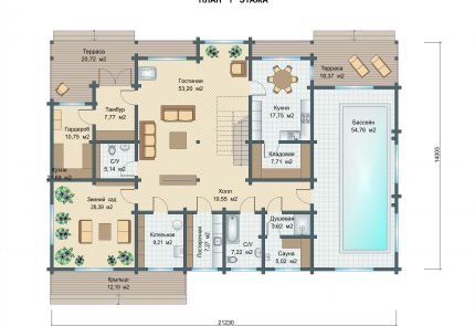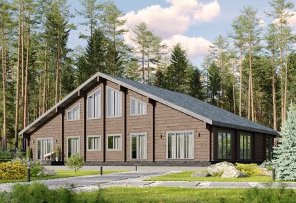 Дом из клееного бруса был построен по индивидуальному проекту. Площадь дома составляет 297 м2. Для строительства изготовлен брус 200х180 (h).