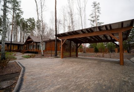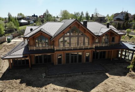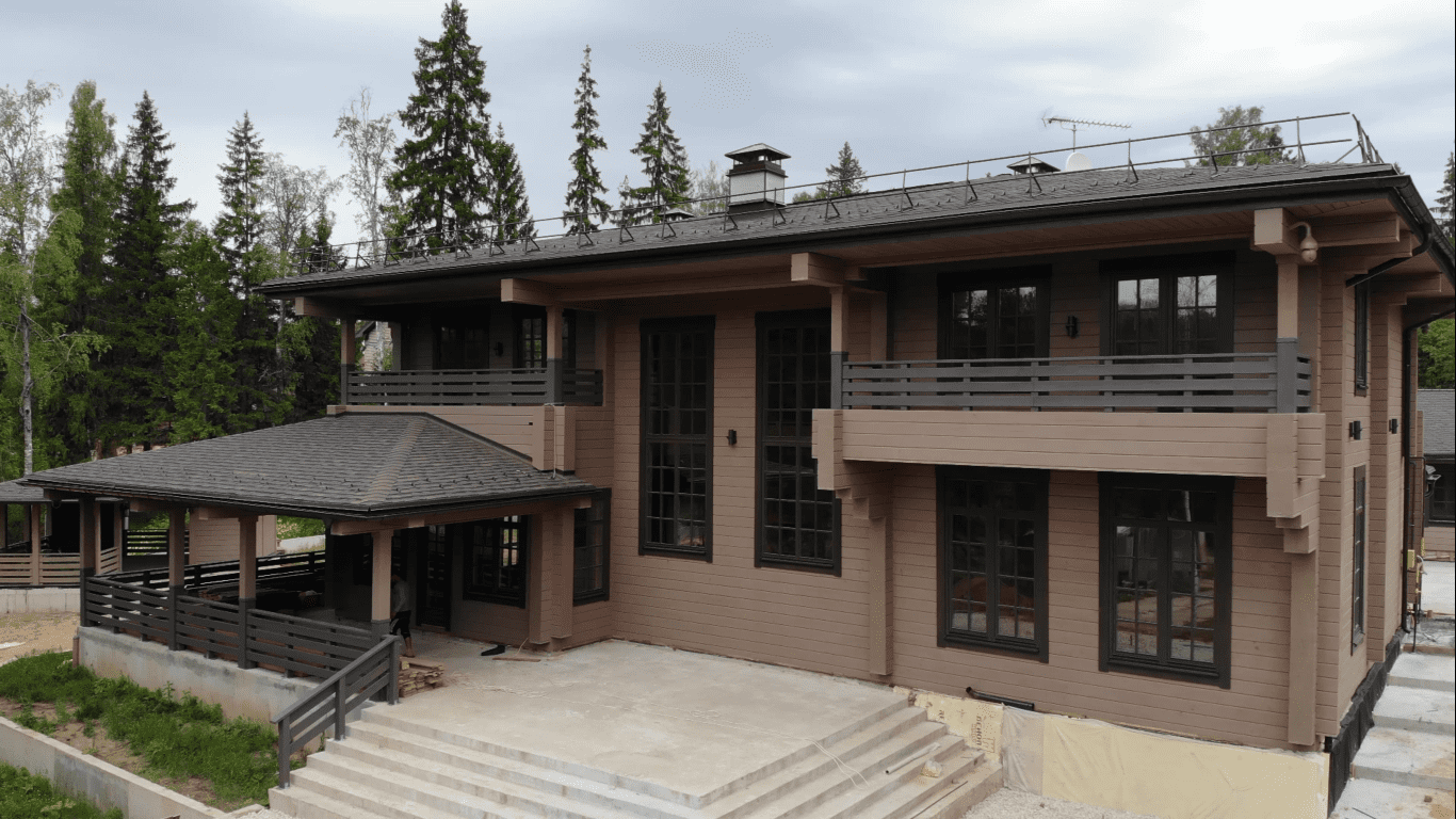Усадьба из клееного бруса площадью 478 м2 была построена несколько лет назад.