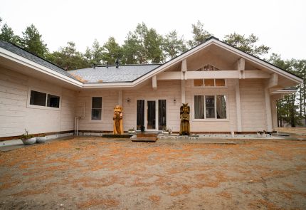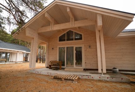 Дом из клееного бруса был построен по индивидуальному проекту. Площадь дома составляет 297 м2. Для строительства изготовлен брус 200х180 (h).