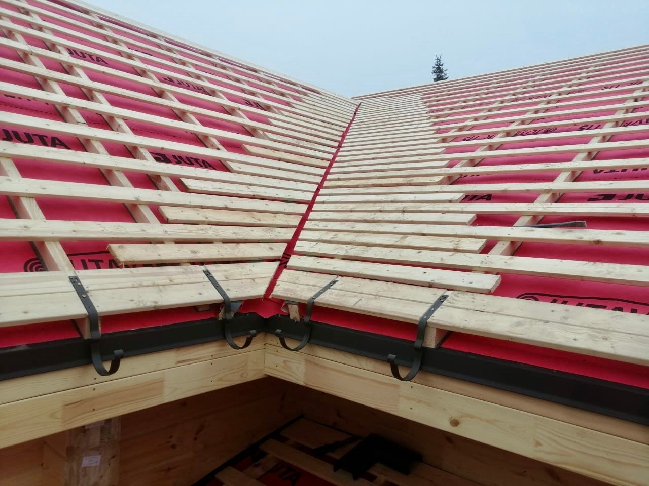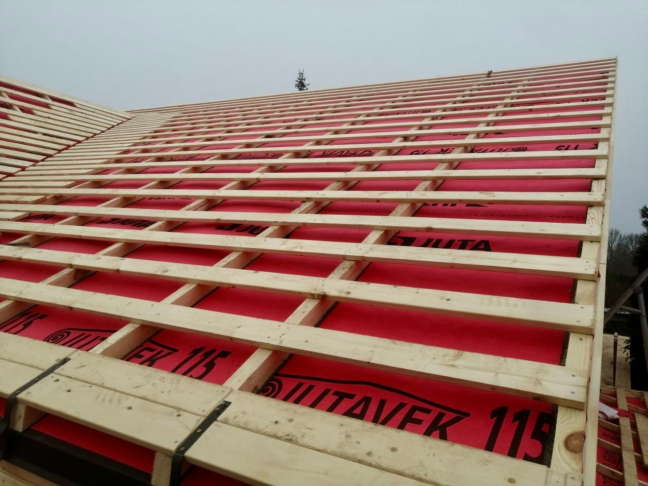 Это полностью индивидуальный проект нашего заказчика. Общая площадь дома составляет 182,8 квадратных метров. В строительстве мы использовали клееный брус собственного производства из сосны сечением 205х185(h) мм.