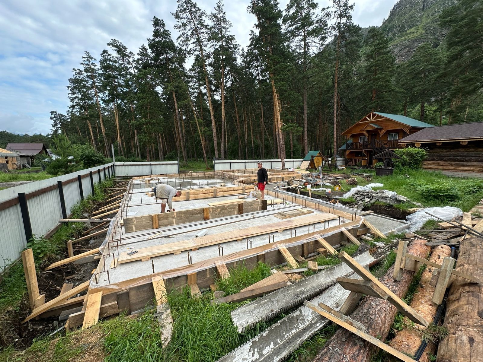 Наша бригада подготовила опалубку фундамента для заливки. Это полностью индивидуальный проект нашего заказчика. Общая площадь гостиницы составляет 310,99 м2.