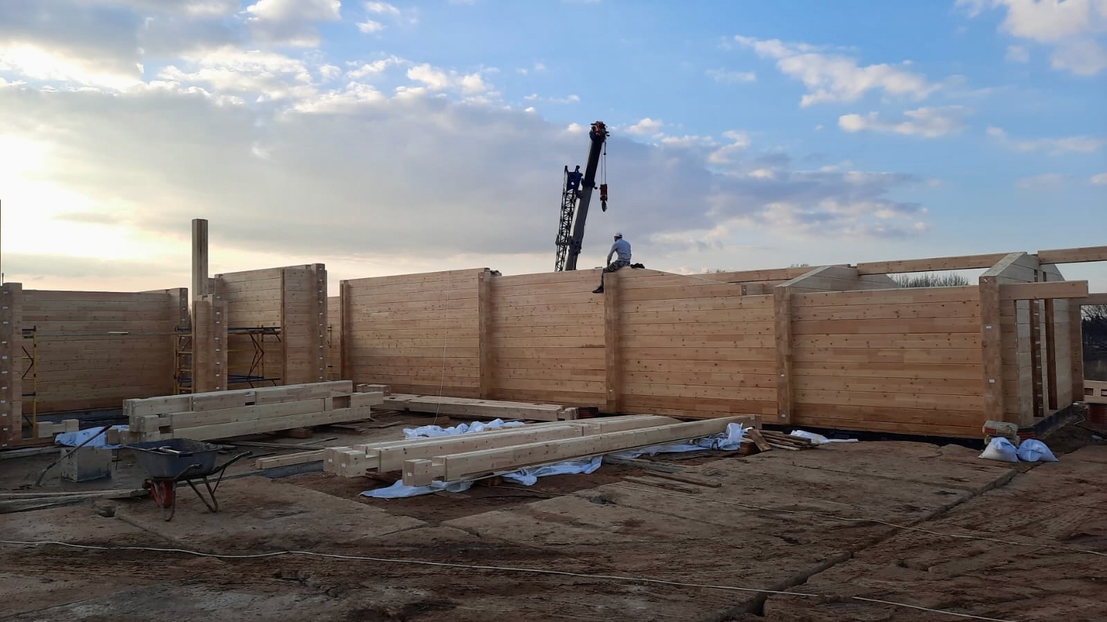 В Московской области наша бригада продолжает собирать сруб дома. Дом строится из клееного бруса собственного производства из кедра сечением 245х270 мм. Это индивидуальный проект нашего заказчика. Общая площадь дома составляет 641,3 квадратных метров.