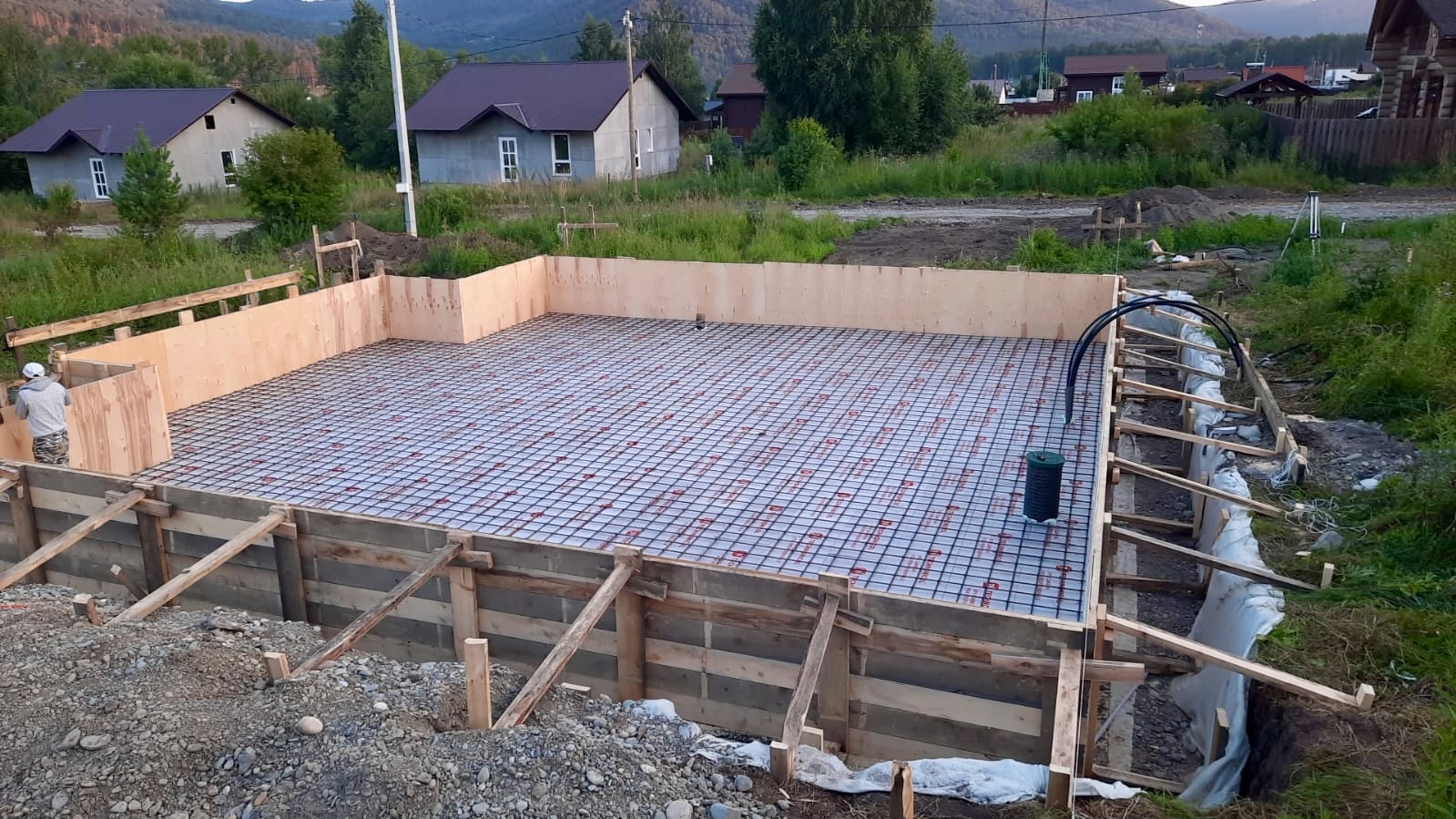 Сейчас наша бригада подготовила фундамент перед заливкой. Это полностью индивидуальный проект нашего заказчика. Общая площадь двухэтажного дома составляет 231,23 квадратных метров.