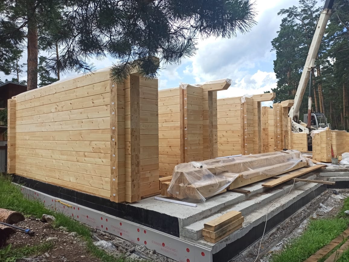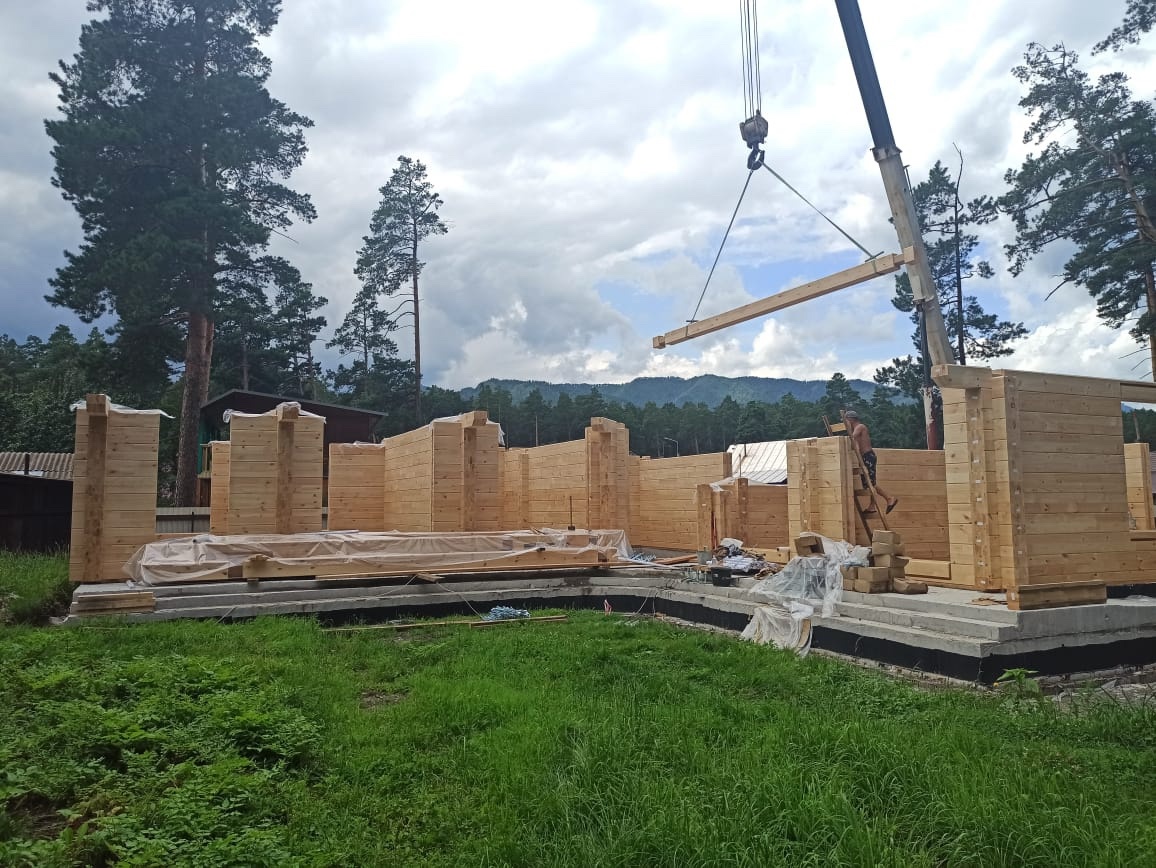 Наша бригада выполняет работы по сборке сруба. Это полностью индивидуальный проект нашего заказчика. Общая площадь гостиницы составляет 310,99 м2.