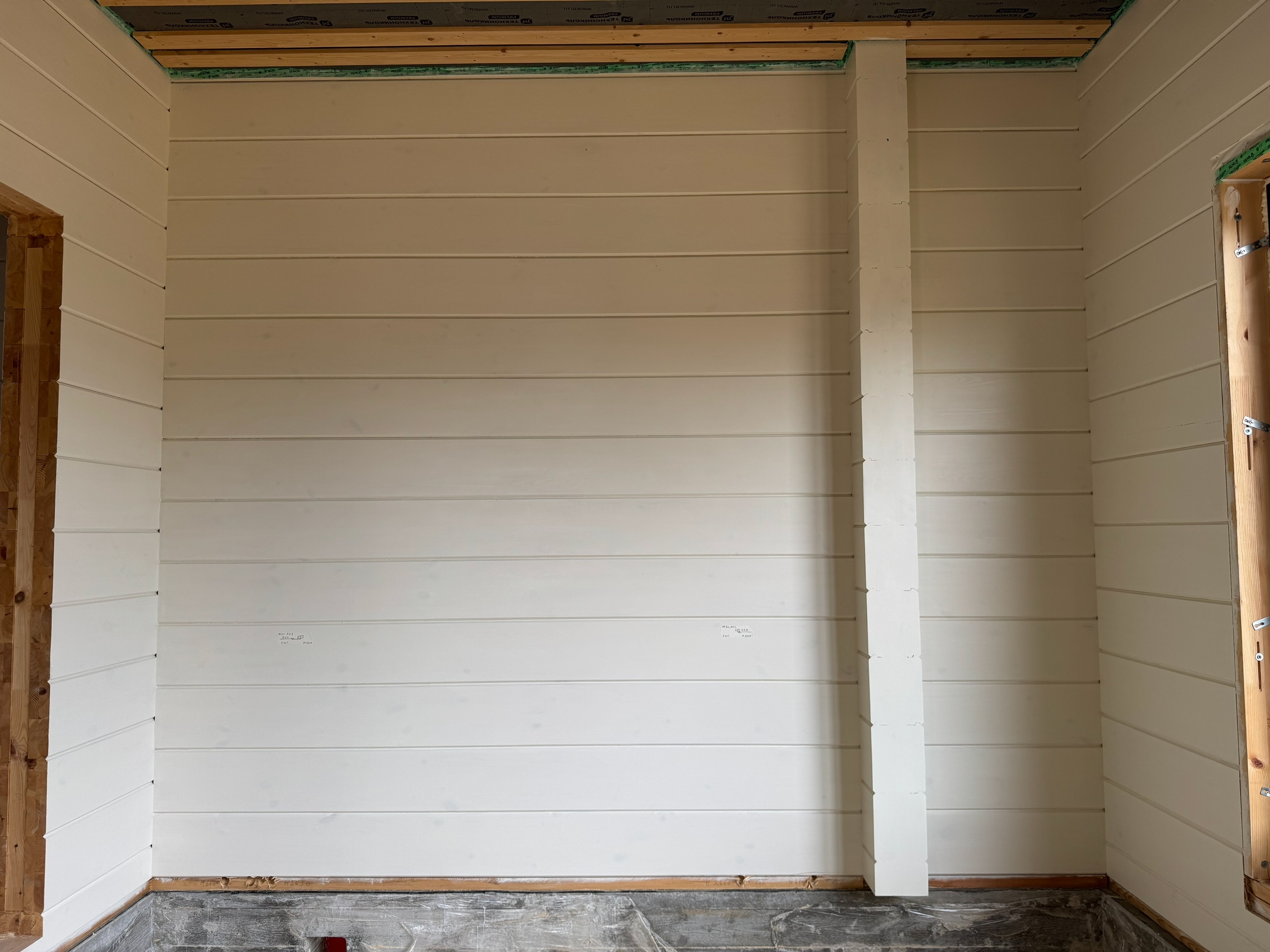 Сейчас наша бригада приступила к внутреннему окрашиванию. В строительстве мы использовали клееный брус собственного производства из сосны сечением 205х270(h) мм. Это полностью индивидуальный проект нашего заказчика. Площадь дома составляет 290,23 м2.