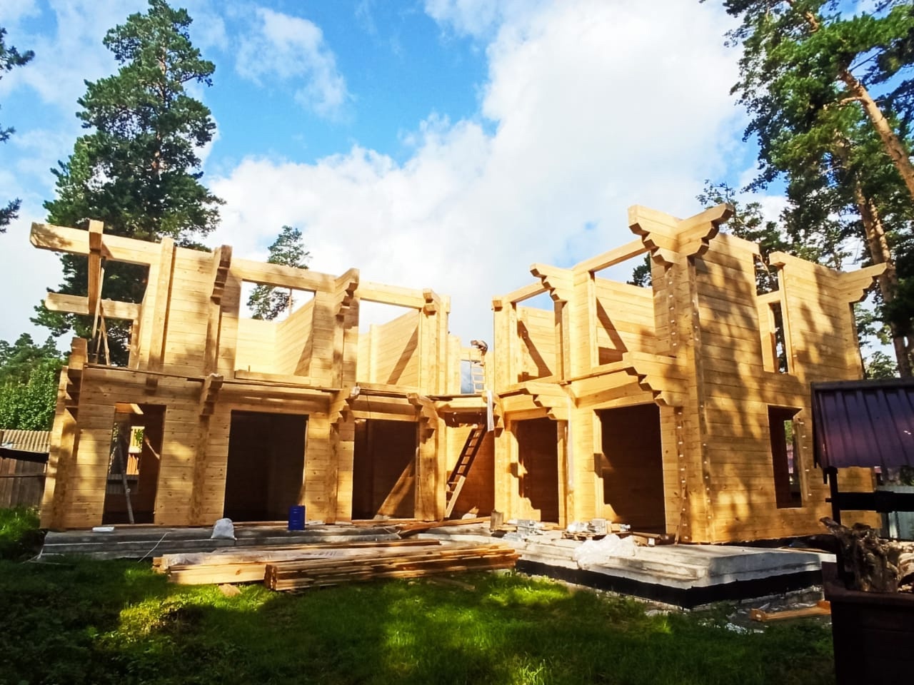 Наша бригада выполняет работы по сборке сруба. Это полностью индивидуальный проект нашего заказчика. Общая площадь гостиницы составляет 310,99 м2.