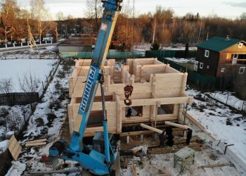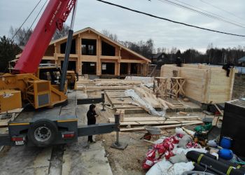 Наша бригада приступила к сборке сруба дома. В строительстве мы используем клееный брус из сосны сечением 205х185 мм. Это полностью индивидуальный проект нашего заказчика. Общая площадь дома составляет 170 квадратных метров.