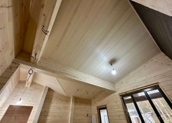 Наша бригада выполняет отделочные работы потолков в доме. Дом построен по нашему типовому проекту Анси с индивидуальными изменениями планировки.