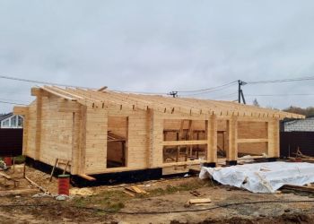 Мы завершили монтаж стропильной системы. Сейчас наша бригада приступает к монтажу кровельного пирога. В строительстве мы используем клееный брус собственного производства из сосны сечением 205х270(h) мм. Это полностью индивидуальный проект нашего заказчика. Площадь гаража составляет 99,67 м2.