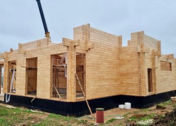 Наша бригада приступила к сборке сруба дома. Дом строится из клееного бруса собственного производства из сосны сечением 205х185 мм. Это индивидуальный проект нашего заказчика. Общая площадь составляет 395,96 квадратных метров.