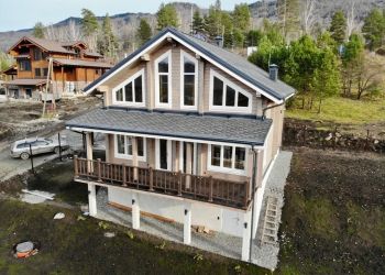 В строительстве мы использовали клееный брус собственного производства из сосны с сечением 185х205 мм. Также в этом доме мы установили деревянные окна нашего производства из сосны. Общая площадь дом составляет 184 квадратных метра. Это полностью индивидуальный проект нашего заказчика.