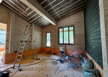 Наши бригады приступили к разводке электрики и ОВК (отопление, вентиляция и кондиционирование) в доме. Дом построен по нашему типовому проекту Анси с индивидуальными изменениями планировки.