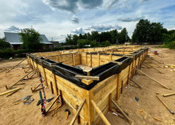 Наша бригада приступила к работам по устройству фундамента дома и бани. Это индивидуальный проект нашего заказчика. Площадь дома составляет 256,38 м2 и бани 164,3 м2.