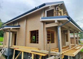 Наша бригада завершила монтаж сруба и приступила к монтажу стропильной системы кровли. Одноэтажный дом площадью 140 квадратных метров. За основу был взят наш типовой проект Анси, но заказчик внес свои индивидуальные изменения. В строительстве мы будем использовать клееный брус из сосны собственного производства с сечением 205х185мм.