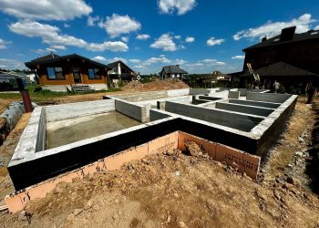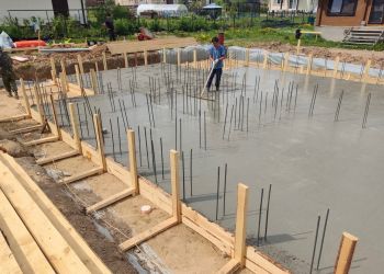 Наша бригада закончила заливку фундамента. Одноэтажный дом площадью 140 квадратных метров. За основу был взят наш типовой проект Анси, но заказчик внес свои индивидуальные изменения. В строительстве мы будем использовать клееный брус из сосны собственного производства с сечением 205х185мм.