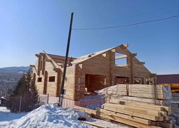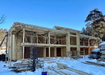 Сейчас наша бригада будет приступать к утеплению кровли. Дом построен из клееного бруса собственного производства из сосны с сечением 185х205 мм. Индивидуальный проект нашего заказчика. Двухэтажный дом общей площадью 510 квадратных метров.