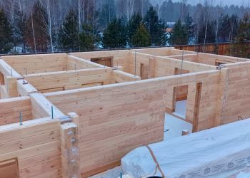 Наша бригада приступила к сборке сруба. В строительстве мы используем клееный брус собственного производства из лиственницы с сечением 185х245 мм. Дом с зоной барбекю — полностью индивидуальный проект нашего заказчика. Общая площадь дома составляет 428 квадратных метров.