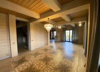 Завершили работы по внутренней отделки.Дом построен по индивидуальному проекту заказчика.В строительстве мы использовали клееный брус собственного производства из сосны, а также установили свои деревянные окна.