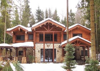 В строительстве мы использовали клеёный брус из сосны 245х185мм и 205х185мм.Площадь дома составляет 295 м2.