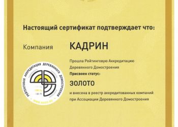 Мы рады сообщить вам, что компания "Кадрин" прошла Рейтинговую Аккредитацию Деревянного Домостроения. Присвоем статус: ЗОЛОТО и внесена в реестр аккредитованных компаний при Ассоциации Деревянного Домостроения.
