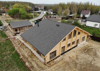 Сейчас наша бригада завершила монтаж финишного покрытия кровли. Также приступили к внешнему окрашиванию. В строительстве мы использовали клееный брус собственного производства из сосны сечением 205х270 мм. Площадь дома составляет 424,61 м2 и площадь технического помещения с навесом 71,9 м2.
