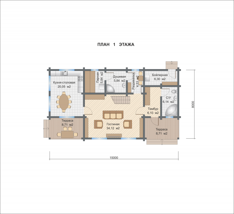 Базовые планировки Баня из клееного бруса Атланта 1