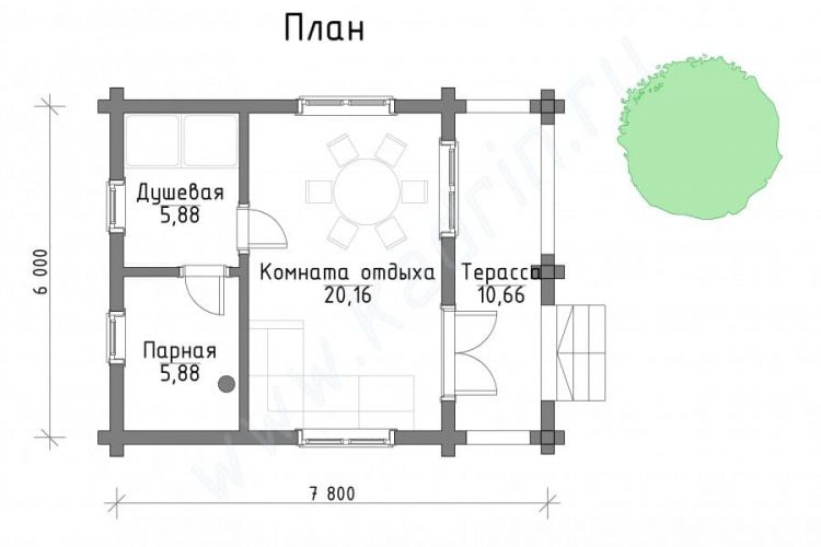 Базовые планировки Баня из клееного бруса Мидленд 1