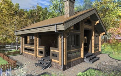 Проект бани из клееного бруса, площадь которой составляет 42,58 кв. м.