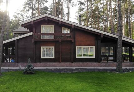 лиственницы. Это наиболее популярный строительный материал, который сочетает высокую прочность, стойкость к биологическим факторам (грибковым поражениям, гнилостным процессам) и действию влаги. Для многих владельцев дополнительным плюсом станет приятный розово-желтый оттенок и выразительный рисунок древесины. Стены из такого материала не требуют дополнительной обработки;