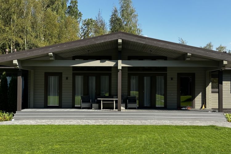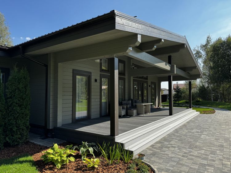 Выбрали типовой проект, но внесли небольшие изменения. Понравилось, что компания пошла навстречу и адаптировала проект под наши пожелания. Все работы выполнены в срок, претензий к качеству нет. Отдельное спасибо за помощь в планировке участка.