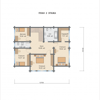 По проекту в здании есть 4 спальни на втором этаже, которые можно переоборудовать под любые другие помещения.
