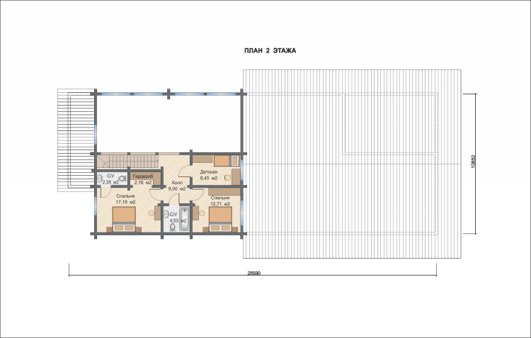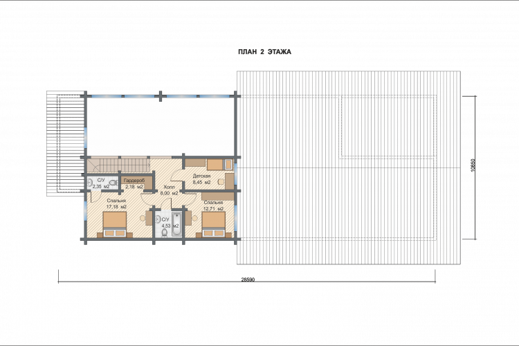 По проекту в здании есть 3 спальни на втором этаже, которые можно переоборудовать под любые другие помещения.