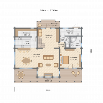 Полезная площадь проекта "Валенсия" - 276 кв.м. Площадь крыльца составляет - 7,81 кв.м., площадь террасы - 35,01 кв.м., площадь балкона - 1,48 кв.м.