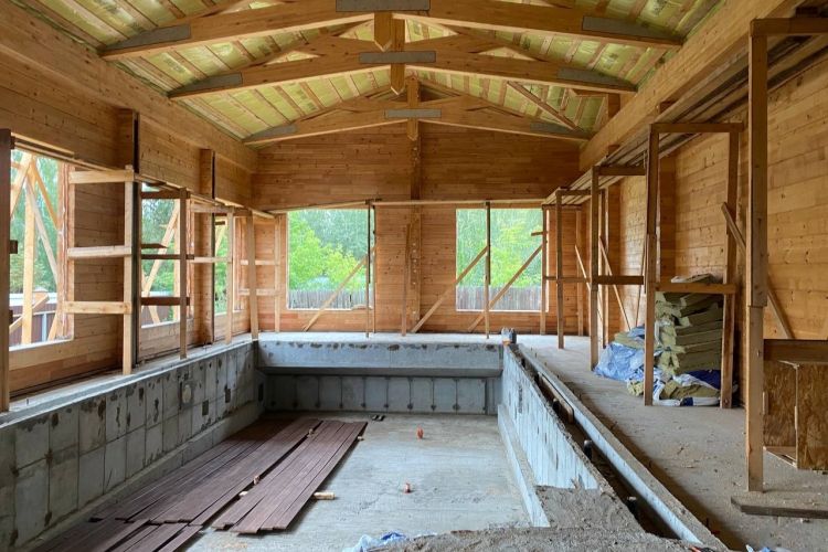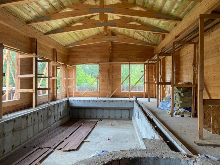 Дом с бассейном строится по индивидуальному проекту нашего заказчика.