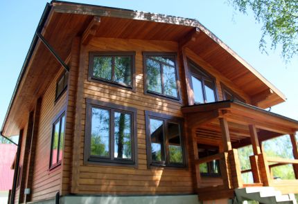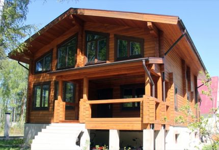 • Из лиственницы. Очень прочный материал. Древесина лиственницы пропитана смолой, являющейся природным антисептиком. Это способствует увеличению длительности эксплуатации. Из бруса на основе лиственницы производители также рекомендуют возводить бани.