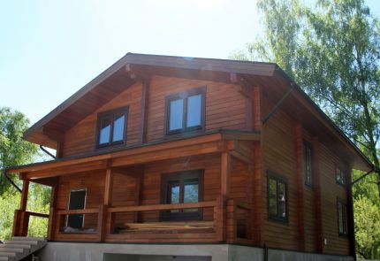 • Высокая теплоизоляция. Древесина, из которой изготавливается клееный брус, характеризуется низкими показателями теплопроводности. Изолирующие способности готового здания будут выше, чем у обычных деревянных стен. При правильном монтаже такому дому не потребуется дополнительное утепление;