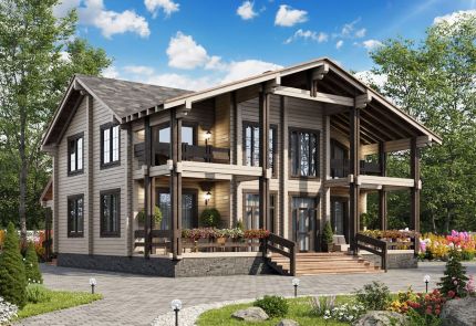 Дома из клееного бруса на 300 м2 – удобное и уютное жилье для семей с детьми и людей, которые хотят жить с комфортом. В нем каждый сможет обустроить свое личное пространство. При этом останется достаточно места для просторной гостиной, столовой и др. При желании можно выделить комнату для занятий спортом, помещения под сауну, баню или гараж. Компания «Кадрин» готова реализовать проекты в разных архитектурных стилях под ключ.