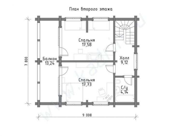 Также дом оборудован двумя санузлами и балконами в спальнях (балконом в каждой спальне).