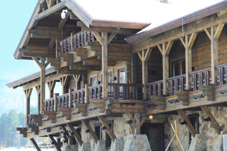 Двухэтажный ресторан из соснового клееного бруса, площадь которого составляет 700 кв. м.