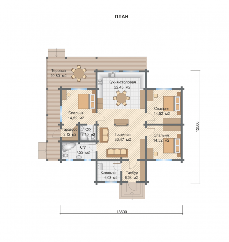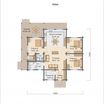 Базовые планировки Дом из клееного бруса Ларедо 1