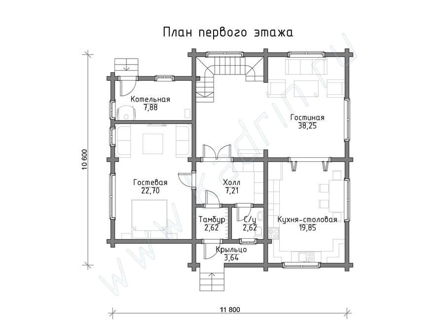 Также, в доме есть большая гостиная, совмещенная с кухней-столовой.