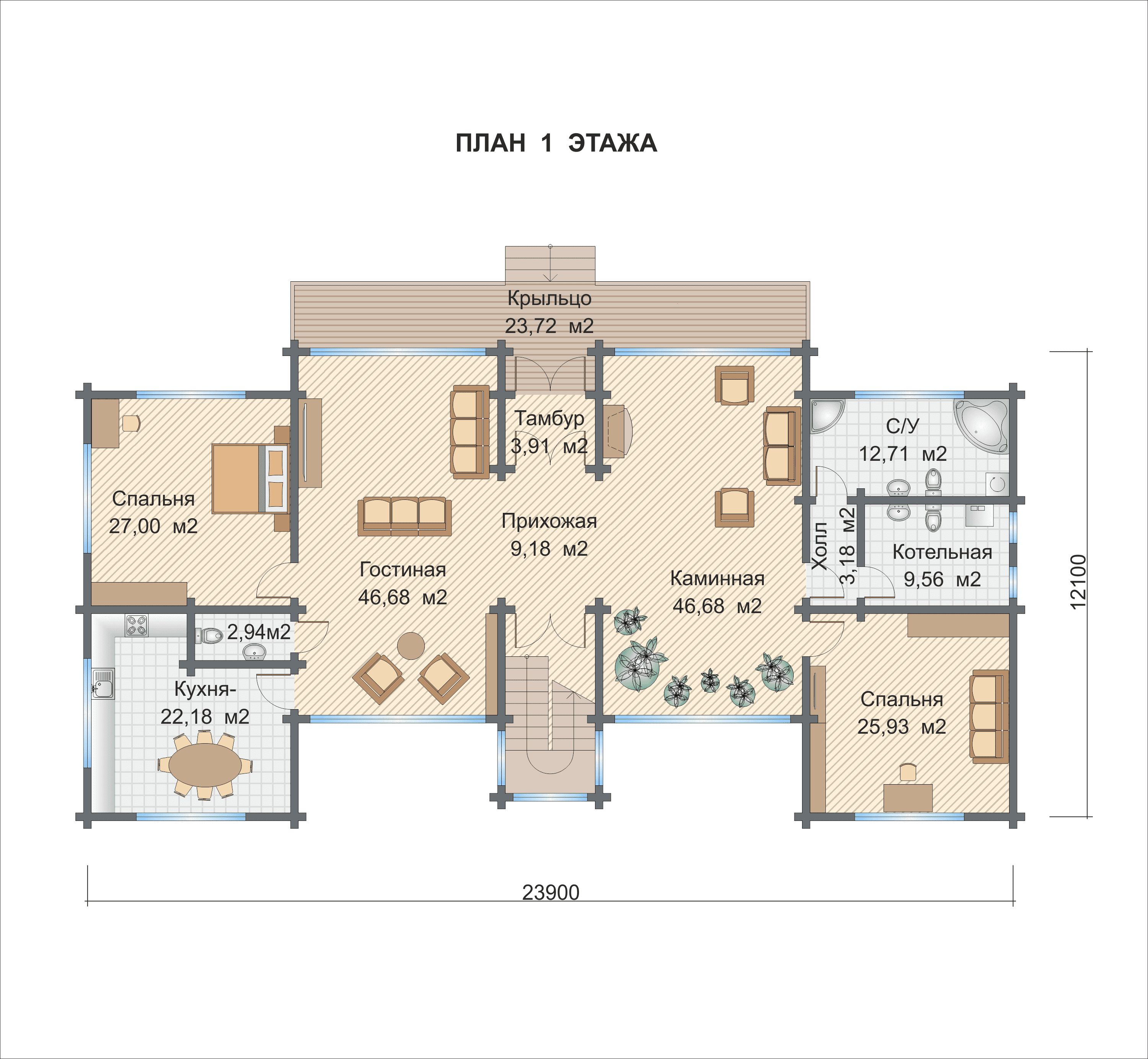 Базовые планировки Дом из клееного бруса Марсель 1