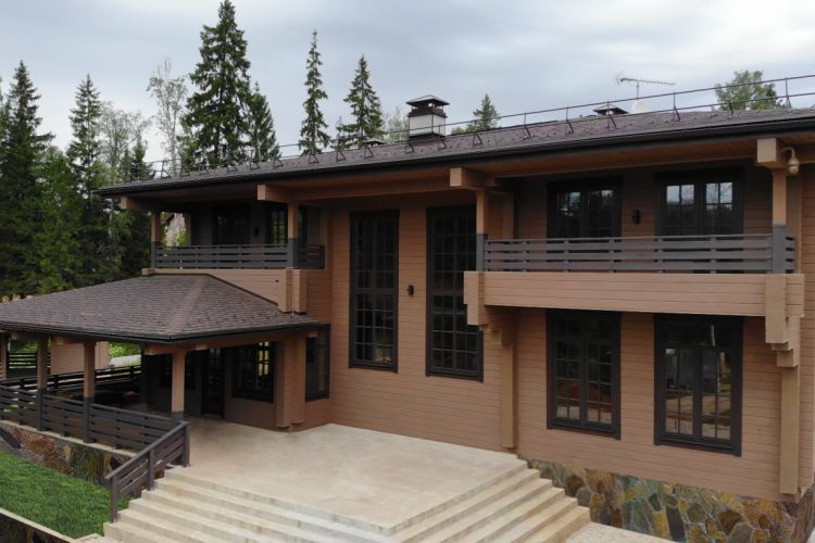 Дом из клееного бруса площадью 478 кв.м. был построен по индивидуальному проекту Заказчика.