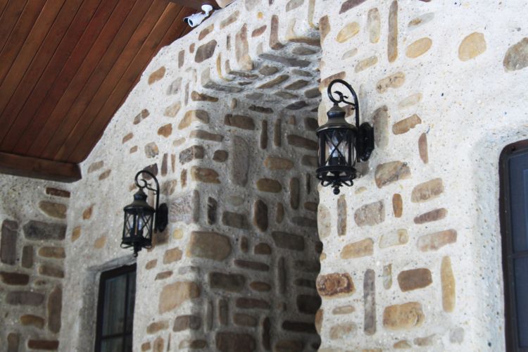 Первый этаж дома каменный, второй выполнен из клееного бруса.