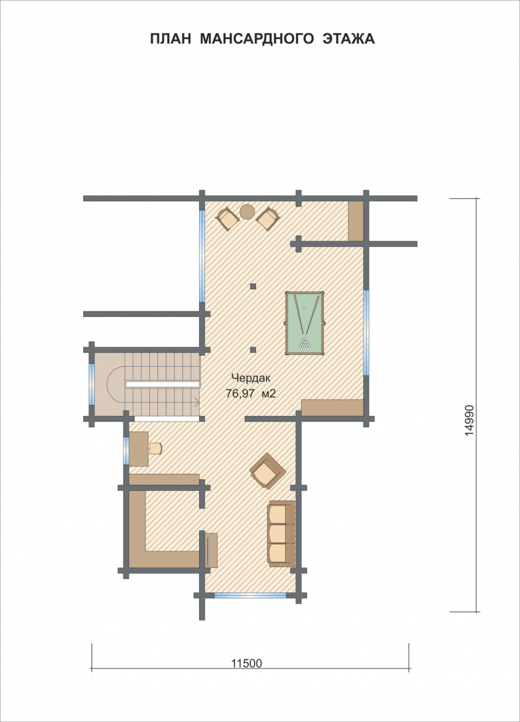 • стеновой комплект: брус клееный 185(h)х205 мм (сосна) с конструкционным запилом чашек под архитектурно-планировочное решение Заказчика