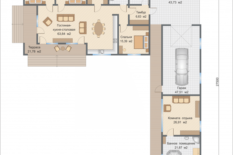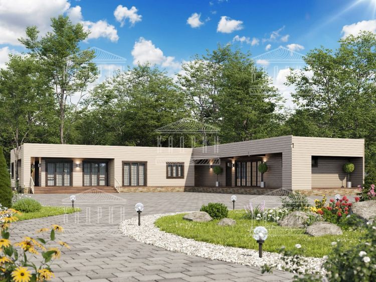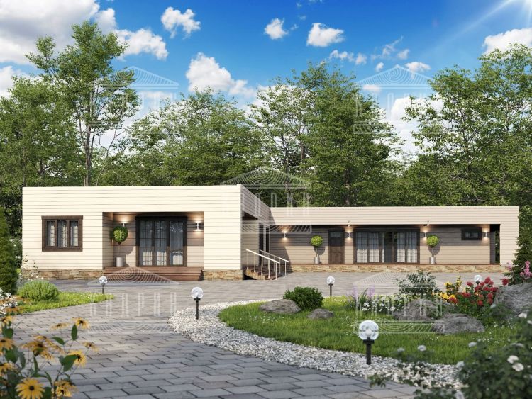 По проекту "Таланс" - одноэтажное здание, которое также оснащено двумя большими открытыми террасами. Площадь террас составляет - 60,67 кв.м.