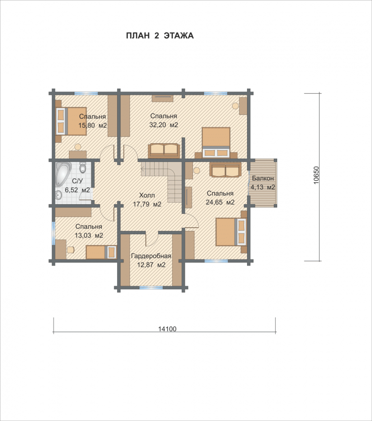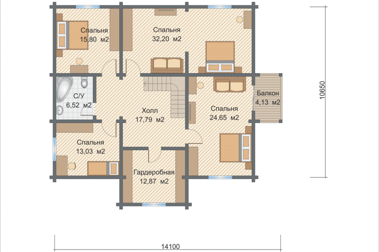 По проекту в доме есть 5 спален, 2 С/У.