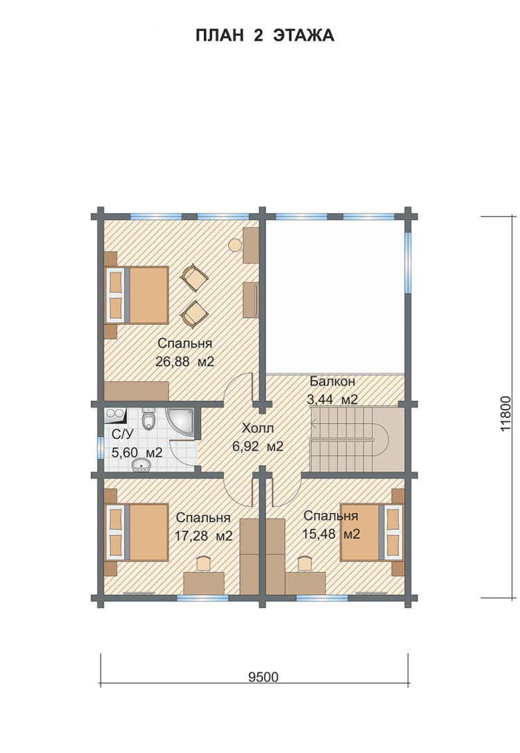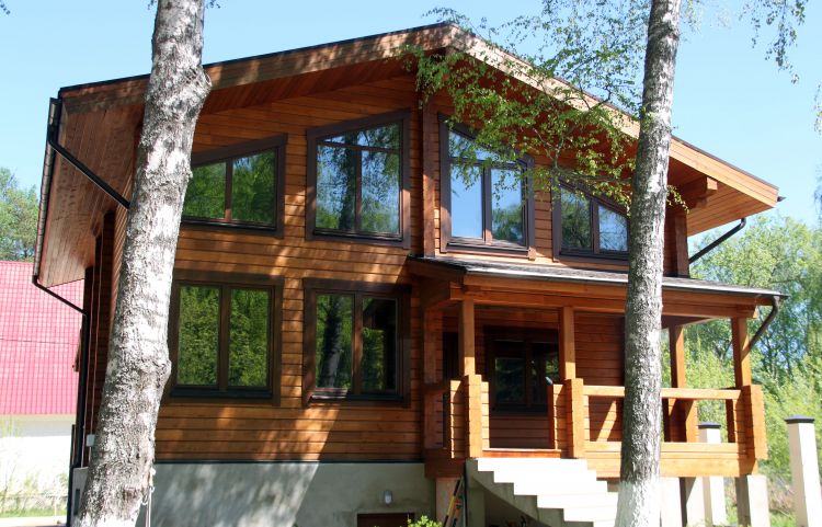 Двухэтажный дом из клееного бруса, полезная площадь которого составляет 193 кв. м.
