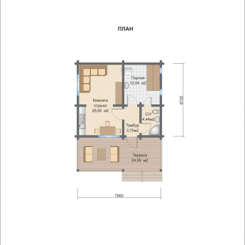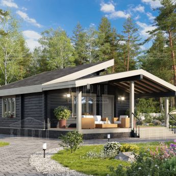 Полезная площадь проекта "Гринвуд" - 71 кв.м. По проекту "Гринвуд" - одноэтажное здание, которое также оснащено террасой. Площадь террасы – 24,59 кв.м.